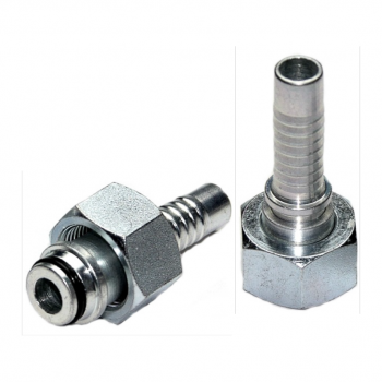 Terminal hembra giratória, rosca milimétrica, paso de rosca 1,5 y 2,0, vedación Boleada - DKO - JIC 37º, hecho en acero carbono para prensado de mangueras hidráulica.