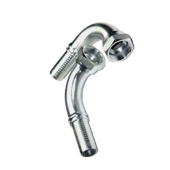 Terminal hembra giratória curva 90º, rosca UNF, vedación JIC 37º, hecho en acero carbono para prensado de mangueras hidráulica.