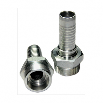 Terminal macho fijo, rosca milimétrica, paso de rosca 1,5 y 2,0. Hecho en acero carbono para prensado de mangueras hidráulica.
