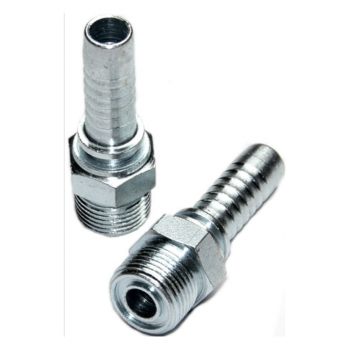 Terminal macho fijo, rosca en pulgada UNF, vedación sede plana O´Ring, hecho en acero carbono, para prensado de mangueras hidráulica.