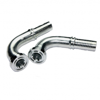 Terminal flange 90º, vedación O´Ring, altura del flange 8.0mm, hecho en acero carbono para prensado de mangueras hidráulica.