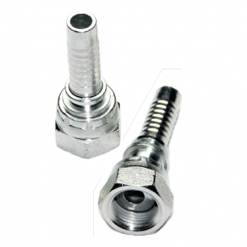 Terminal hembra giratória recta, rosca en pulgada UNF, vedación sede plana O´Ring, hecho en acero carbono, para prensado de mangueras hidráulica.