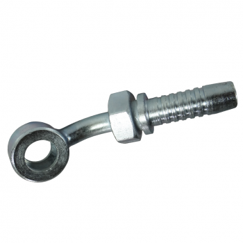 Terminal Ojal 45º, hecho en acero carbono, para prensado de mangueras hidráulica.