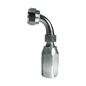 Terminal hembra giratória curva 90º, rosca UNF, vedación JIC 37º, hecho en acero carbono para manguera hidráulica.