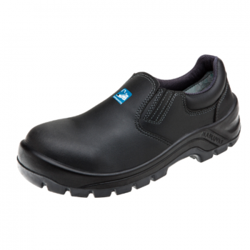 Botín de seguridad con elástico, de M Micro, forro sintético, plantilla sintética fijada por el proceso strobel, suela PU bidensidad inyectada directamente a la capellada.100% Microfibra.