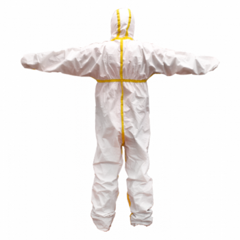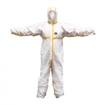 de liquidos. El cierre unidireccional frontal esta protegido por un cubrecierre, cuyo material es el mismo que el del traje, lo que evita el ingreso de material contaminante a través del cierre. El cubrecierre se sella por el interior con una cinta de doble contacto. Capucha compuesta por 3 piezas y elasticada en el contorno. Puños y tobillos elasticados.