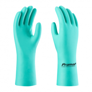 Guante de Látex Nitrílico con palma antiderrapante interno flocado, espesura de 0,38 mm y largo total de 31 cm.
