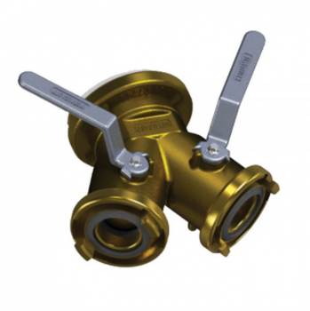 Derivante Esférico de cierre rápido en Y utilizado para división de líneas de incendio con entrada STORZ 2.1 / 2 "y 2 salidas STORZ 1.1 / 2 ". Cuerpo predominante en Latón o Aluminio Fundido. Cierre por válvulas de bolas de 1/4 "de vuelta accionadas por palancas de latón.