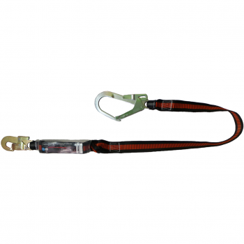 Cabo de vida anticaídas en cinta plana de 1.5mt. Amortiguador de caída. Mosquetónes de 18mm y de 55mm de abertura. Cinta de poliéster de alta tenacidad de 45mm de ancho. Norma utilizada: Iram 3622-1