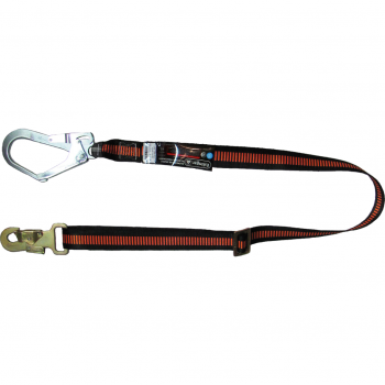 Cabo de cinta plana, 2mts de alta tenacidad, 45 mm de ancho. Hebilla reguladora. Dos mosquetones (uno de 18mm y otro de 55mm). Utilizado en trabajos generales de posicionamiento. Norma Iram 3622-2