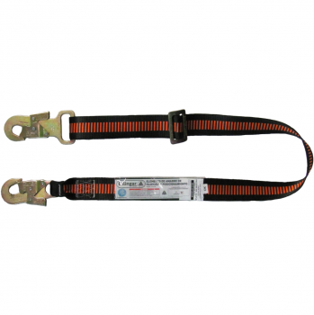 Cabo en cinta plana regulable 1.5mt. Cinta de poliéster de alta tenacidad de 45mm de ancho. Dos mosquetones de 18mm. Norma utilizada: Iram 3622-2